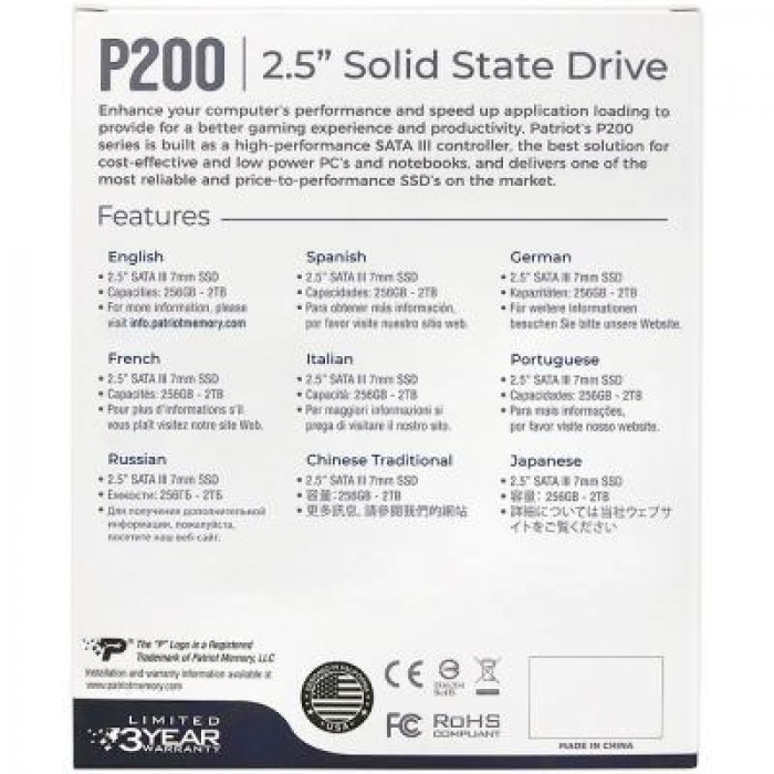 Накопитель SSD 2.5" 256GB Patriot (P200S256G25)