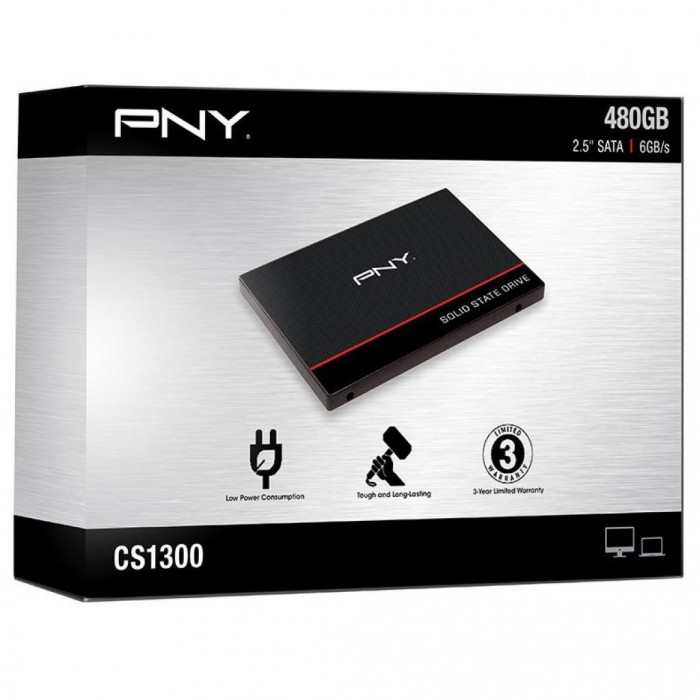 Накопитель SSD 2.5" 480GB PNY SSD (SSD7CS1311-480-RB) представляет собой 2.5" твердотельный накопитель от PNY. Устройства хранения данных имеют толщину 7 мм, благодаря чему подходят для использования и в настольных компьютерах, и в ноутбуках. Для подключения служит интерфейс Serial ATAIII. Накопители семейства PNY CS1311 относятся к начальному уровню. Они выполнены по технологии TLC, которая позволяет хранить три бита информации в одной ячейке. Вместимость составляет 480 ГБ. Скорость передачи данных в режиме чтения достигает 550 МБ/с, в режиме записи — 510 МБ/с. Производительность накопителя на операциях с произвольным доступом достигает 90 000 IOPS в режиме чтения и 90 000 IOPS в режиме записи.
